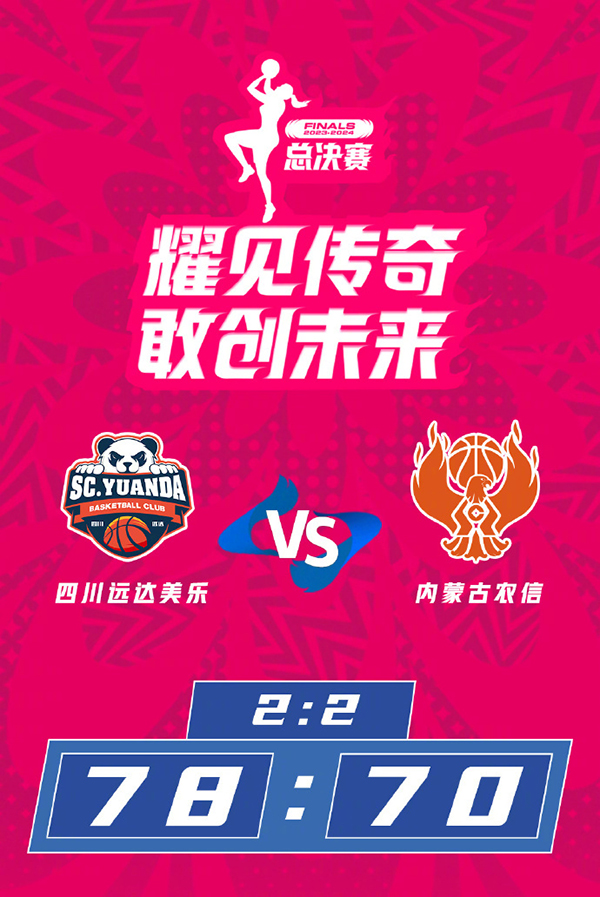 JRS直播网4月19日讯 WCBA总决赛G4,内蒙古客场挑战四川。大比分内蒙古2-1领先。比赛开始,王思雨高效输出,四川全面开花,内蒙古却全队梦游,四川首节26-5领先21分,次节双方围绕20分分差展开拉锯战,内蒙古内外开花稍稍迫近比分,四川连投带罚拿分文字局势,后半段内蒙古持续发力打出7-2的攻势,半场战罢四川46-30领先内蒙古16分。易边再战,双方力拼防守,得分非常困难,坎贝奇独中两球,琼斯2+1回应,四川持续发力,李缘连中两球咬住,孙梦然犯满离场,末节双方争夺陷入白热化,四川稳扎稳打保持优势,琼斯持续输出带队追赶,潘臻琦、宋宁和王雪朦先后犯满离场,关键时刻四川顶住了对手的反扑,将优势保持到了最后。最终,四川78-70力克内蒙古,将总决赛拖入抢五。