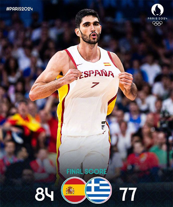 JRS直播网讯 7月30日 奥运会男篮A组迎来一场关键对决,西班牙男篮和希腊男篮狭路相逢,两支球队在各自的首场比赛中双双输球遭遇开门黑。首节之争双方状态相当且外线手感都非常不错,希腊方面字母哥联手卡拉西斯和帕帕扬尼斯,三人合力拿下球队第一节22分里的20分;西班牙这边阿尔马达表现神勇拿下10分紧追比分;次节西班牙外线突然下起三分雨,他们这一节命中7记三分,上半场三分球17投11中的命中率直接打崩希腊,节中送出一波19-5的攻势一举扭转局势并带着14分优势进入下半场。休息归来西班牙男篮状态迅速回落5分钟里仅得6分;希腊抓住机会送出跨节16-6的攻势并一度追平比分;不过最后时刻西班牙及时站出来用一波8-0重新拉开比分奠定胜局,字母哥则错失绝平三分。最终,西班牙力克希腊拿下比赛,后者遭遇2连败。