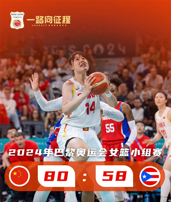 JRS直播网讯 北京时间8月3日讯 奥运女篮小组赛A组,中国女篮今日对阵波多黎各女篮,由于前两战中国女篮均输球,此役只有赢球才能保留晋级希望。比赛上来,波多黎各率先命中一记三分,随后中国队就打出一波7-0的小高潮取得领先,整个第一节中国队只让对手拿到11分,次节中国队又是连拿七分将分差拉开到两位数,之后两队一直围绕着十分左右的分差展开拉锯,半场结束时中国队领先11分;下半场回来,中国队继续占据着场上的主动权,防守端让对手的得分连续三节低于20分,末节场上分差已经达到了二十分,比赛彻底失去悬念,最终中国队大胜波多黎各迎来首胜,目前小组排名第三,净胜分-1。