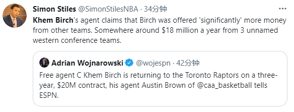 来源:JRS直播网08-06 10:45JRS直播网讯 北京时间8月6日,2014年落选秀肯-伯奇续约留队,据espn名记沃纳罗斯基报道,肯-伯奇已经和猛龙续签3年2000万美元的新合同;他的经纪人更是透漏,肯-伯奇拒绝了三支西部球队高达1800万美元年薪的报价,最终选择继续留在猛龙。