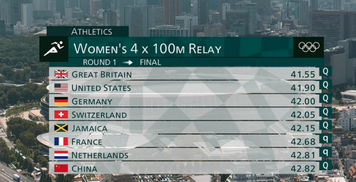 中国队的成绩是37秒92,小组第一进入决赛,恭喜中国队。