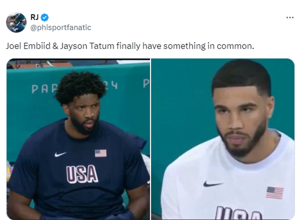 首战26分大胜塞尔维亚,塔图姆全场被弃用,第二战17分大胜南苏丹,美国男篮变阵,塔图姆、浓眉联手詹姆斯、库里和布克首发出战,全场11人登场只有恩比德坐穿板凳。