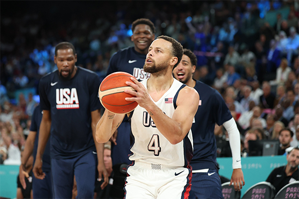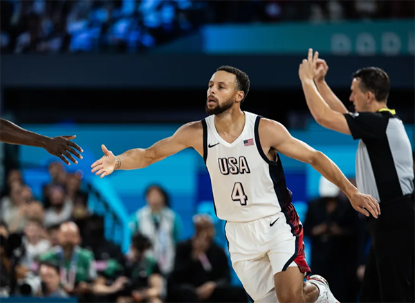 3、库里单场命中9记三分创美国男篮奥运历史第二高纪录