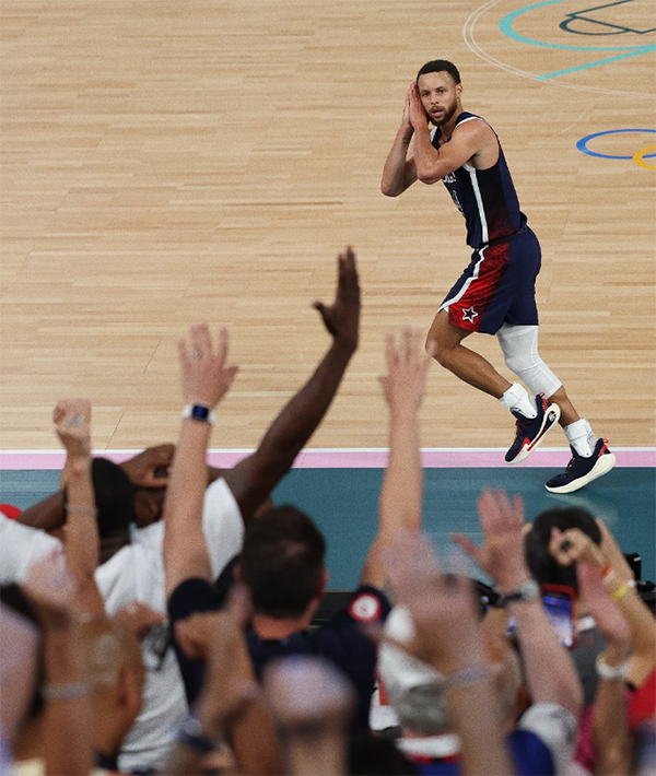 末节美国领先两位数后文班亚马和亚布塞莱带队再次反扑,关键时刻,杜兰特送出大帽,库里连中4记三分球锁定胜局,轰进制胜三分做出经典的晚安庆祝动作,詹库一起晚安庆祝;最终美国队98-87夺得金牌。