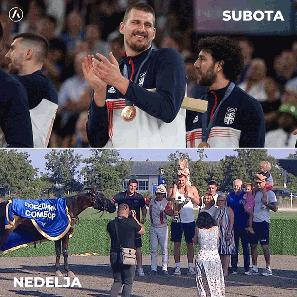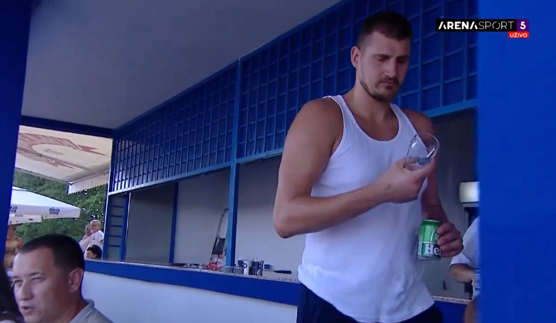 回家后约基奇开始享受生活——回到松博尔,身穿短裤和白色背心,喝着小酒观看赛马比赛,现场解说员介绍了约基奇的最新成就:巴黎奥运会铜牌得主。