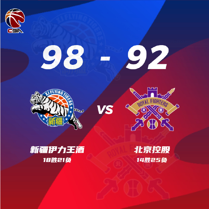 北控(14-25):张帆21分6篮板、廖三宁13分7助攻、俞长栋12分7篮板、邹雨宸12分4篮板3助攻、哈斯10分、艾伦9分、刘晓宇5分、高登6分。