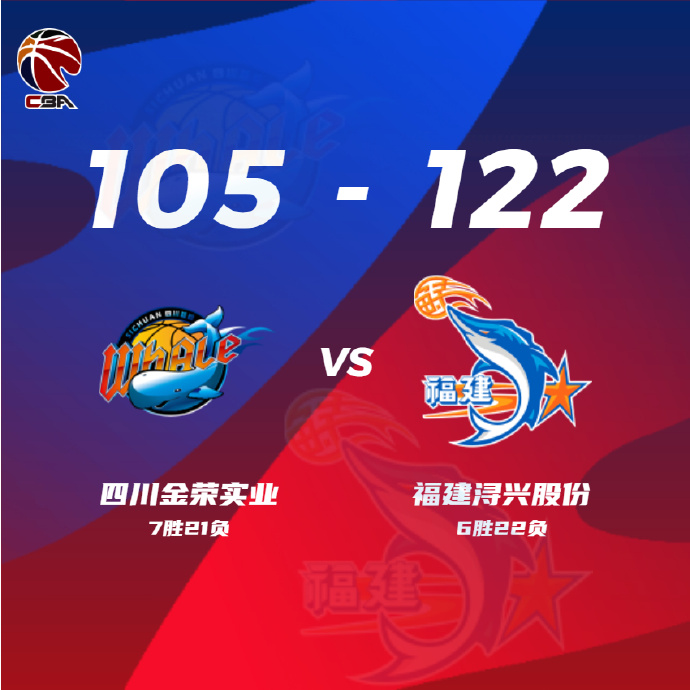 JRS直播网1月18日讯 CBA常规赛第二阶段接近尾声,四川对阵福建,四川最近日子不太好过,由于哈达迪的伤缺,最近已经3连败,7胜20负排在积分榜第17位,而福建有所反弹,2连胜后5胜22负排在第19位。双方上来就展开对攻战,-田桂森手感火热,6分钟内弹无虚发砍下12分,帮助福建队建立主动权,而四川队进攻主要靠马兰的单打苦苦支撑,次节一上来四川就陷入得分荒,陈林坚找到手感单节砍下15分,福建抓住机会打出15-0攻击波一举拉开近20分的分差。下半场,韩硕找回状态连续取分,但陈林坚也是保持住手感,第三节双方打平,福建依然保持18分的领先优势,随后双方展开拉锯战,福建始终保持着15分左右领先,最终福建122-105力克四川,拿到3连胜的同时送对手4连败。