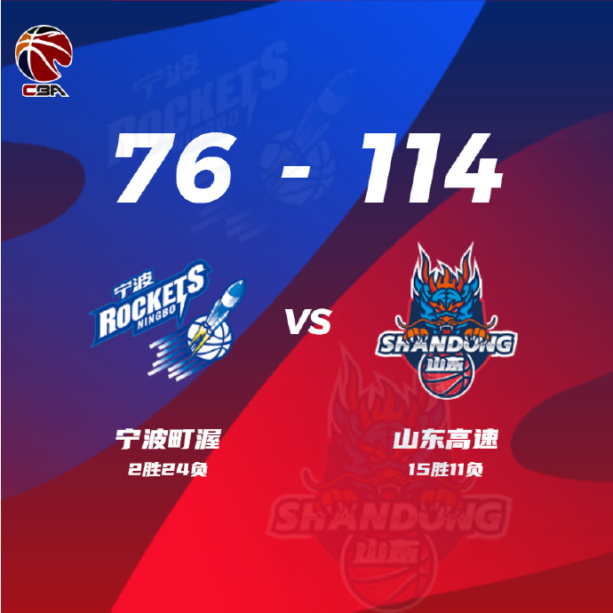JRS直播网1月13日讯 CBA常规赛继续进行,山东迎战宁波,宁波近期遭遇三连败,目前2胜23负继续联赛垫底,山东迎来连胜后战绩来到14胜11负,暂列联赛第7位。比赛一上来宁波率先找到状态一度占优,中段山东进攻逐渐复苏,吉伦沃特里突外投单节独得13分,山东稳住阵脚后拉开比分,首节结束时山东确立17分优势,次节回来,兰兹博格续上火力,内外开花的他予取予求单节狂砍18分,宁波无法打出连续的得分高潮,半场战罢,山东将领先优势扩大到27分。下半场回来,吉伦沃特再度发力单节砍下13分,山东延续火力继续拉开比分,三节结束后山东已经领先30分,末节上来,宁波进攻滞涩追分乏力,山东提前换上替补阵容,比赛提前失去悬念,最终山东114-76大胜对手。