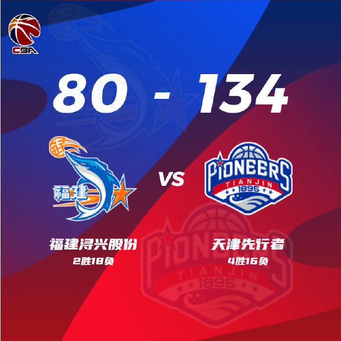 JRS直播网12月31日讯 天津和福建今日迎来年前的最后一场对决,两支球队本赛季发挥都不太理想,这其中天津目前遭遇14连败,福建也遭遇到了7连败。两支球队近期战绩虽然都比较糟糕,但从首节对决来看天津更渴望取胜,以拿下10分的詹姆斯为首天津首节就拿到16分的大比分领先;次节福建没有任何好转迹象,他们半场三分球7投0中颗粒无收,而天津这边半场命中10记三分,以双外詹姆斯和韦瑟斯庞联手拿下30分的带下,天津半场就建立起28分的大比分领先。休息归来场面依旧,福建完全落入被动,而天津再送25-11的进攻高潮将优势扩大至40分以上,巨大的分差也让比赛早早失去悬念,最终,天津大胜福建终结14连败,而福建的连败场次上升至第8场。