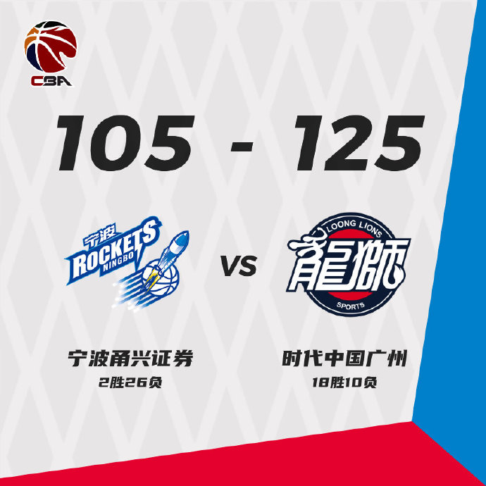JRS直播网1月27日讯 CBA常规赛,宁波今日对阵广州,前者遭遇九连败后排在联赛倒数第二位,后者则是取得两连胜暂列积分榜第七位。比赛上来宁波的表现还算不错,能够与对手保持拉锯,但首个暂停之后广州开始发力,一波攻势将分差拉开到了两位数,次节双方的命中率都出现下降,但在半场结束时辽宁还是将领先优势扩大到了20分。易边再战,两队开始保持拉锯,双方你来我往但分差却并没有缩小的趋势,比赛早早就失去了悬念,最终广州大胜宁波,迎来三连胜的同时也送给后者十连败。