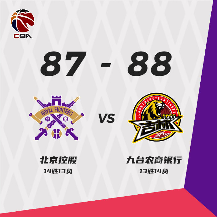 JRS直播网1月26日讯 CBA常规赛,北控今日对阵吉林,前者上场比赛输给辽宁排在联赛第十位,后者则取得三连胜排名积分榜第十二位。比赛上来北控进入状态较慢,而吉林这边琼斯手感火热,个人连续得分带队取得领先,之后的比赛北控虽然有反扑的势头,甚至一度将比分追平,但他们始终无法实现反超,半场结束时吉林依旧领先5分。易边再战,北控依靠着廖三宁和王俊杰的出色发挥迅速实现反超,不过吉林一直紧咬比分没有让对手将分差拉开,比赛悬念一直保持到了最后,关键时刻兰兹博格和马泳相继投出绝杀球都未能命中,最终吉林险胜北控,迎来四连胜。
