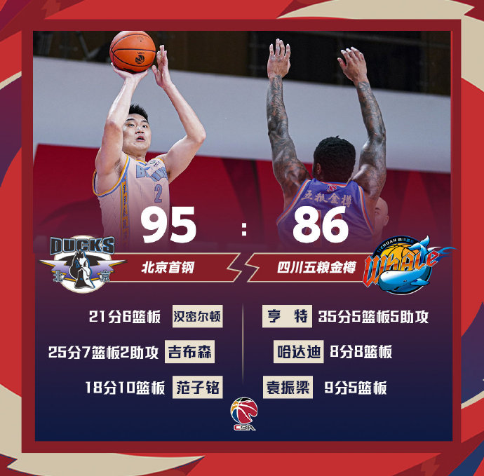 四川(26-25):亨特35分5篮板5助攻,朱松玮10分,哈达迪8分8篮板,李原宇5分5篮板,袁堂文2分6助攻,陈辰2分,景菡一9分4篮板3助攻,李柯七2分4助攻,袁振梁9分5篮板,李泓翰2分,苏若禹2分2篮板