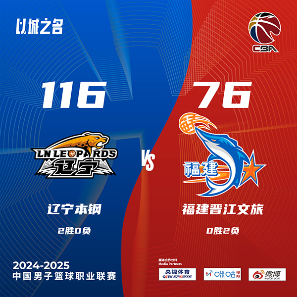 JRS直播网10月16日讯 CBA常规赛,辽宁主场迎战福建。比赛开始,双方短暂相持,随后辽宁持续发力打出12-0很快取得20分领先,次节福建仍无力招架,辽宁多点开花不断扩大优势,分差来到30分以上,半场战罢辽宁76-41领先福建。易边再战,辽宁命中率下降,但仍保持着大比分的领先,末节辽宁将优势扩大到40分以上,最终,辽宁116-76大胜福建。