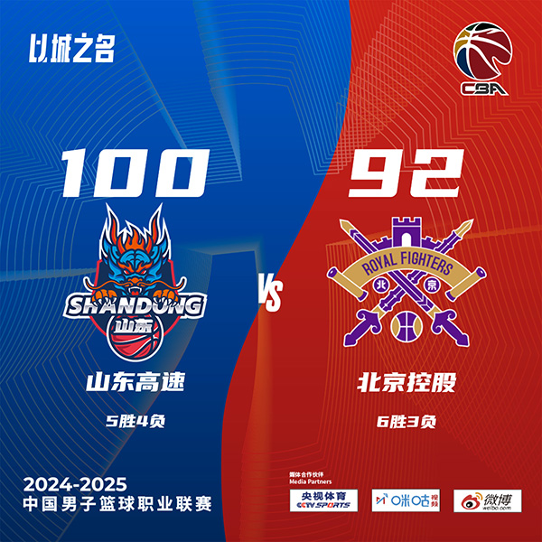 JRS直播网11月1日讯 CBA常规赛,山东对阵北控,山东最近遭遇2连败,北控上场比赛击败天津。开场后萨林杰连续在内线强攻得手,山东进攻效率不高,邹雨宸也状态不错频频拿分,北控逐渐建立起领先优势。第二节盖利和克里斯两人轮流砍分帮助山东将比分追上,北控主要靠外援拿分,陈培东半场结束时一记压哨三分让山东半场结束时只落后1分。易边再战,两队打得十分胶着,第四节山东国内球员打出状态多点开花取得优势,北控进攻依旧不理想只有萨林杰能够抢分,山东将领先优势保持到最后,最终山东100-92逆转北控结束2连败。