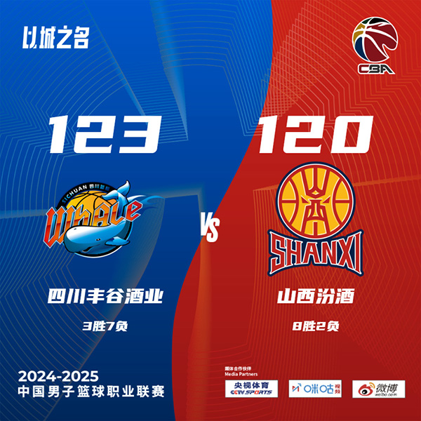 JRS直播网11月3日讯 CBA常规赛,四川对阵山西四川最近遭遇2连败,山西则是状态不错取得一波4连胜。开场后山西利用刘传兴在内线的优势以及双外援的发挥取得领先,四川则靠着外援的发挥追上比分并在第一节后半段跟山西打得有来有回。第二节山西以7-0开局巩固优势,虽然四川努力追分,但山西外线找到手感接连命中三分,他们单节轰下40分在半场结束时建立起16分优势。下半场回来场上局势风云突变,四川全面开花一路追分,并且在第四节延续攻势下起三分雨,以一波16-2的高潮将比分反超。原帅和古德温联手回敬一波10-0 夺回领先。关键时刻萨姆纳连连砍分并投进锁定胜局的三分,最终四川123-120逆转终结山西4连胜。