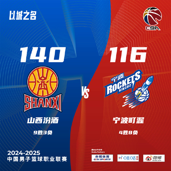 JRS直播网体育讯 2024年12月1日讯 CBA常规赛,山西今日迎战宁波,两队目前的情况都不算好,均是遭遇两连败,此役都想止住颓势。比赛上来,两队就打得十分胶着,分差始终没能打开,不过首节最后一分半钟时间里宁波没有再得分,山西趁势打出一波10-0的小高潮取得领先,次节原帅的外线手感火热连中三分,分差被拉开到了两位数,在首节轰下70分后次节双方又是合砍79分,半场结束时宁波落后15分;下半场回来,双方的命中率都出现下滑,但宁波的表现显然更差,分差也是直逼三十分,比赛到了末节早已失去悬念,最终山西大胜宁波,结束连败的同时也送给宁波三连败。