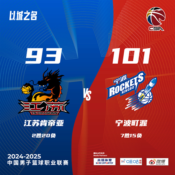 JRS直播网讯北京时间12月25日讯 CBA第二阶段赛事继续开打,宁波和江苏今日迎来一场对决,目前宁波遭遇6连败,江苏则遭遇5连败。首节之争双方状态相当,这一节双方最大分差不过4分且拉回拉锯僵持,次节场面依旧,打了半节时间双方也还是平手状态,不过江苏的被动来自于他们罚球线上,整个上半场他们罚丢了10个罚球,不过后半段江苏进攻端表现更加出彩以一波9-0的攻势占据上方并奠定半场6分领先。休息归来江苏一度拉开两位数领先但无法控制领先,宁波不断制造杀伤罚球紧追比分;末节宁波虽然一直被动追分但最后时刻看到曙光,罗凯文两记三分帮助宁波实现反超,江苏读秒阶段又出现致命失误并让马奇轻松拿分。最终,宁波逆转江苏结束6连败,江苏的连败则拉大至6场。