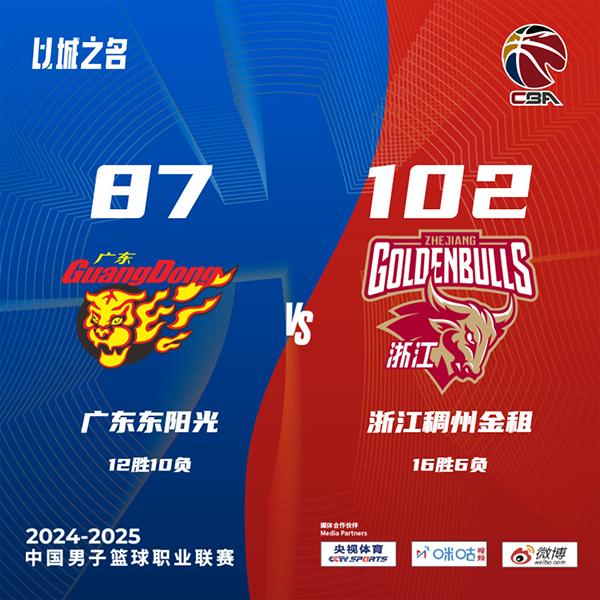 JRS直播网讯北京时间12月25日中国男子篮球职业联赛 常规赛,广东东阳光对阵浙江稠州金租。半场广东50-52浙江,最终广东87-102浙江。广东东阳光徐杰21分3板9助,埃里克-莫兰德19分12板5助,新援莱斯登场4分钟1篮板1抢断;浙江稠州金租科比-西蒙斯24分4板5助,余嘉豪17分12板4助。