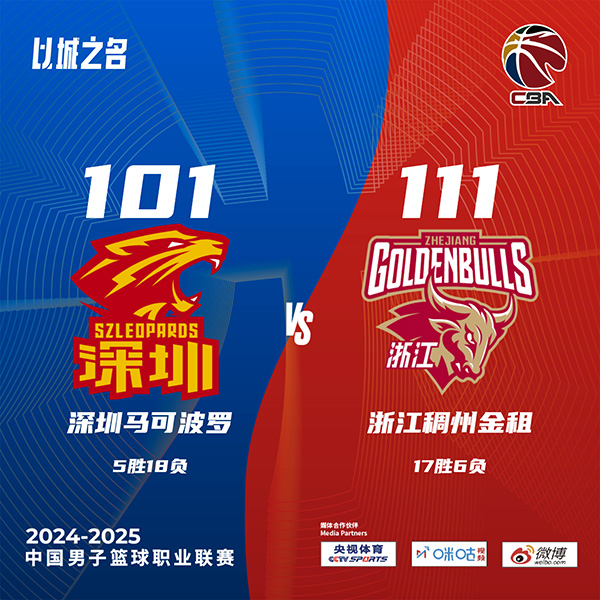 JRS直播网讯北京时间12月27日讯 CBA常规赛继续进行,两连败的深圳主场迎战浙江,深圳目前5胜17负位列联赛倒数第三,浙江豪取8连胜,16胜6负攀升至联赛第4位,但核心吴前预计伤停一个月。首节开打后浙江反客为主,内外结合多点开花轰出9-0开局,深圳外援约翰逊里突外投及时止血,双方你来我往比分紧咬,首节结束时浙江领先2分,次节回来,浙江进攻稍有停滞,但深圳无法打出追分高潮,浙江外援约克联手琼斯率队确立优势,半场战罢,浙江继续领先7分。易边再战后深圳进攻依然没有起色,单节仅得到17分,约克火力不减予取予求,三节结束后浙江已经领先14分,末节上来,深圳进攻回暖,但浙江总能给予回应,双方分差始终保持在10分左右,最终浙江111-101击败对手豪取9连胜。