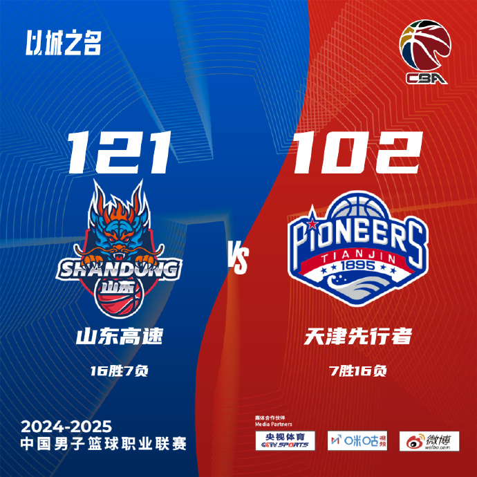JRS直播网讯 北京时间12月27日讯 CBA常规赛,山东主场迎战天津。山东15胜7负列联赛第六,天津7胜15负排第十四。一开场,山东率先发力,内外开花轰出21-7的开局,天津三分4连击止血,次节山东延续火力,高诗岩得分助攻一肩挑帮助球队不断扩大优势,天津不断出手三分但效果不佳,半场战罢山东65-38大比分领先天津。下半场,天津发起反击,盖利连中三分给出回应,末节天津苦苦追赶,无奈之前分差过大。最终,山东121-102轻取天津,主场过关。