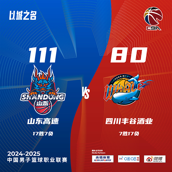 JRS直播网讯北京时间12月30日讯 CBA常规赛,山东对阵四川,山东最近发挥稳定取得3连胜,四川则是上场比赛1分险胜广州。开场后四川在亨特的带领下打得有声有色,球队外线手感也是不错,山东则是靠克里斯的强势发挥紧咬比分。第二节盖利和摩尔联手爆发,四川单节打出34-15的攻势建立起领先。易边再战,四川进攻依旧没有起色,山东继续扩大领先优势。最后一节虽然四川进攻找到感觉,但他们防守完全无法限制山东,最终山东111-80大胜四川取得4连胜。