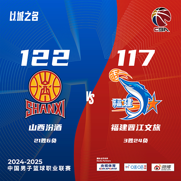 JRS直播网讯北京时间1月7日讯 CBA常规赛,山西对阵福建,两队上场比赛都取得胜利,山西是大逆转新疆,福建是击败四川。开场后福建外线手感不错接连远投命中取得领先,山西进攻端也打得不错,他们多点开花一直紧咬比分。不过福建在第一节尾声到第二节打出一波21-0的攻势将分差拉大,第二节打了5分钟山西才由迪亚洛打破得分荒,此后山西找回状态掀起反扑,不过福建多点开花在半场结束时守住两位数优势。易边再战,张宁、焦海龙和古德温三人合力轮番砍分帮助山西打出进攻高潮将比分反超,邹阳打成2+1止血,随后福建通过连续罚球拿分。末节决战两队打得激烈,上来又是犯规不断,关键时刻山西一阵三分雨再度完成反超并建立起优势,其中原帅独中三元,还有一个是3+1,随后虽然杨连续砍分续命,但山西依旧将领先优势保持到最后,最终山西122-117逆转福建,连续两场完成大逆转。