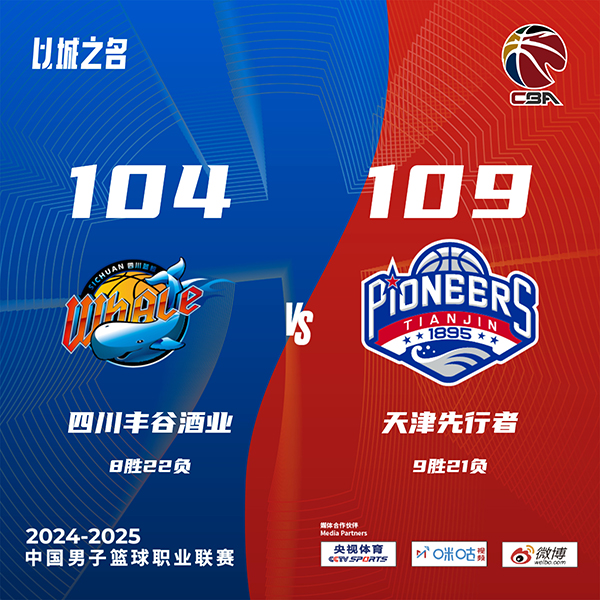 JRS直播网讯北京时间1月13日讯 CBA常规赛,四川对阵天津,两队上场比赛都取得胜利,四川击败宁波,天津力克吉林。开场后四川在外援的带领下以8-0开局,亨特和马里奇状态火热帮助四川一度领先到16分。詹姆斯虽然自己手感不佳,但是多次助攻队友拿分。第二节上来林庭谦和哈姆雷特联手为天津抹平分差,詹姆斯也逐渐找回手感。不过马里奇和亨特依旧保持不错手感,上半场两队打成53平。易边再战,两队打得依旧十分胶着,四川主要依靠亨特拿分,林庭谦下半场依旧保持不错手感,郑昊燃也在外线多次支援三分,虽然亨特接连拿分,但林庭谦手感火热不断拿分,依靠他的神勇发挥天津在最后关头建立领先将胜利纳入囊中,最终天津109-104力克四川。