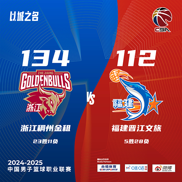 JRS直播网讯 北京时间1月22日讯 NBA常规赛,浙江主场迎战福建。浙江22胜11负高居联赛第4,福建5胜27负垫底。一开场,浙江率先发力,内外开花很快取得两位数领先,路易斯-金和约瑟夫-杨联手拿分带队追赶,福建一度反超比分,达米安-琼斯和余嘉豪制霸内线,浙江重新占据场上主动,半场打完以66-62领先福建。下半场,浙江火力全开轰出25-6一举将分差拉开到20分,末节浙江越战越勇不断扩大优势,最终,浙江134-112大胜福建,主场过关。