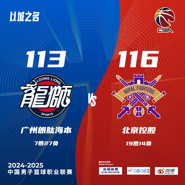 JRS直播网讯 北京时间1月22日讯 CBA常规赛激战正酣,广州主场迎战北控,广州遭遇5连败,7胜26负仅列联赛倒数第三,北控苦吞3连败,18胜14负排在联赛第10位。此役一上来双方便陷入缠斗,郭艾伦延续状态接连取分,萨林杰联手里勒强势回应,双方你来我往比分紧咬,首节结束时北控领先1分,次节回来,两队延续火力继续对攻,北控内外结合一度拉开比分,但郭艾伦连投带罚率队迅速回应,末段朱松玮连续取分,半场战罢,北控确立9分优势。易边再战后郭艾伦状态炸裂单节独得14分,无奈北控总能给予回应,三节结束后北控依然领先3分,末节决战,郭艾伦连投带传率队一波8-0一举反超,决胜时刻朱松玮连拿5分,郭艾伦两罚全中砍下40+,但张帆关键两罚稳稳命中,麦考尔绝平三分未果,最终北控116-113险胜对手终结3连败,同时送给广州6连败。