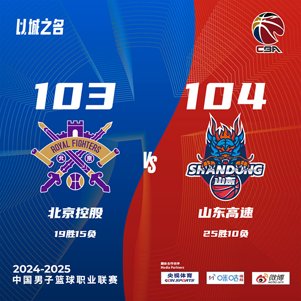 JRS直播网讯 北京时间1月25日讯 CBA常规赛,北控对阵山东,北控最近状态不错取得4连胜,山东也是拿到2连胜。开场后山东打得更有活力,通过反击和二次进攻取得领先,北控靠着里勒和邹雨宸的内线优势追上比分,山东靠着第一节结束前连续的罚球领先1分结束第一节。第二节上来萨林杰和特莱斯开启得分模式帮助北控迅速将领先优势扩大到两位数,虽然山东逐渐找回节奏,但北控进攻打得顺风顺水单节轰下40分。下半场回来,邹雨宸依旧状态火热,他在内线频频暴扣,不过高诗岩手感火热不断砍分,山东紧追不舍,三节结束前库马杰接连篮下得手帮助山东进一步缩小分差。末节回来两队对抗激烈犯规不断,刘晓宇被吹违体犯规,山东抹平分差,随后两队陷入僵持,场上比分交替上升,关键时刻高诗岩两记三分完成反超,北控最后没能把握住绝杀机会,最终山东104-103逆转北控取得3连胜,北控4连胜被终结。
