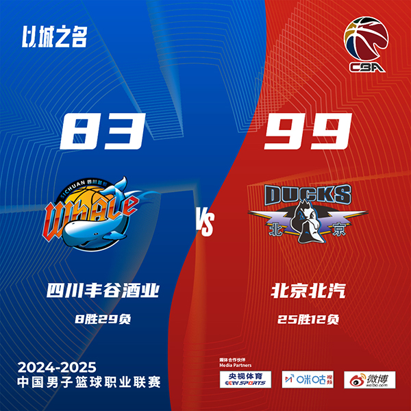 JRS直播网讯北京时间3月7日讯 CBA常规赛,四川主场迎战北京。四川7连败后8胜28负排在第17位,北京4连胜后24胜12负排在第6位。本场比赛,萨姆纳缺阵。比赛开始,北京很是慢热,打了4分钟没有运动战进球,四川打出9-2开局,随后双方命中率都不高,曾凡博接连反击,周琦连续内线打成,北京追到差4分,次节曾凡博有攻有传联手周琦带队反超比分,但王薪凯接连外线回应,曾凡博压哨中投助北京半场还领先1分。下半场,北京外线连续发炮,纳托尔连中三元,曾凡博也连续外线命中,北京顺势领先到10分,末节北京上来7-0继续拉大比分,四川打了近3分钟才拿到首分,随后北京发力拉开20分以上领先,最终北京99-83轻取四川,拿到5连胜同时送对手8连败。