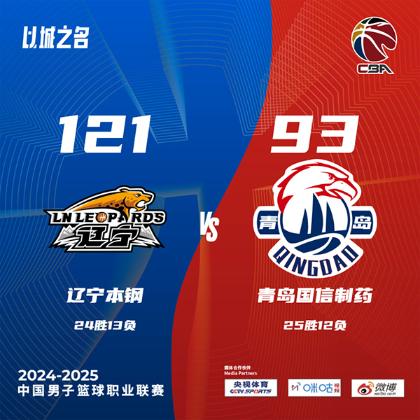 JRS直播网讯北京时间3月7日讯 CBA常规赛,辽宁主场迎战青岛。辽宁23胜13负仅排在第9,青岛25胜11负高居第4。比赛开始,双方开场便陷入缠斗,比分咬得很紧,张镇麟连中两球后赵继伟三分穿针,辽宁完成7-0的攻击波取得领先,次节辽宁持续发力一度获得17分优势,青岛不断冲击内线频频得手迅速缩小分差,半场战罢辽宁63-55领先青岛。易边再战,辽宁稳扎稳打保持场上优势,双方围绕10分左右分差展开激烈争夺,末节辽宁越战越勇一举将优势扩大到20分以上,青岛大势已去无力回天。最终,辽宁121-93大胜青岛,主场过关。