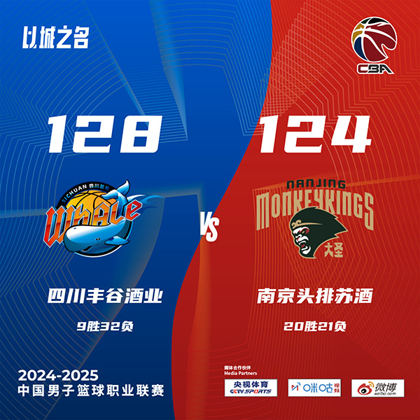 JRS直播网讯北京时间3月16日讯 CBA常规赛,四川迎战同曦,四川目前遭遇11连败,同曦最近取得2连胜。开场后两队就打得比较胶着,郭昊文和田宇恒外线轮番轰炸三分,四川依靠外援的发挥总能及时回应将比分追上,两队多次打成平手。第二节两队还是主要围绕外援来发动进攻,场上比分交替上升,同曦在半场结束前打出一波7-0的攻势取得微弱优势。易边再战,两队上来都是选择在内线绞杀,同曦一度将分差拉大到9分,亨特再度爆发帮助四川打出16-4的高潮在三节结束时反超比分。末节刚回来四川延续攻势将分差拉大,左朕年状态不错接连拿分,利夫和郭昊文带队努力追分,同曦外线也找到手感连续投进三分将比分追平。亨特站出来连进三球帮助四川再度取得优势,最后时刻同曦再度反超比分,曾繁日送了个发球前的犯规,亨特用罚球将比赛拖入加时。加时赛中两队依旧打得难舍难分,左朕年投进一记关键三分,同曦未能再追上比分,最终四川加时128-124逆转同曦结束11连败。
