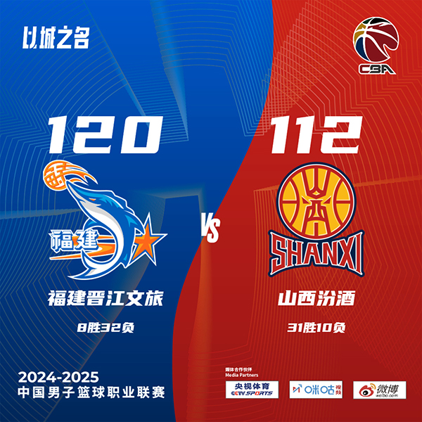 JRS直播网讯北京时间3月17日讯 CBA常规赛,福建主场迎战山西。福建目前7胜32负联盟垫底,山西5连胜后31胜9负高居次席。比赛开始,平德尔联手原帅助山西打出11-1开局,斯蒂尔连砍7分止血,黎伊扬连攻加传助队回应15-4一度反超,古德温站出来稳住7分领先,次节普拉瑟里突外投连砍7分,奎因-库克和路易斯-金也联手给出回应,双方展开拉锯战,半场福建追到差4分。下半场,双方外线对飙,福建突然发力接连反击轰出17-6攻击波直接反超比分,随后刘金雨接连反击一度助队领先到双位数,三节福建反超7分,末节双方展开拉锯战,葛昭宝内线强打2+1一度追平比分,但黎伊扬接连打成一波6-0稳住局势,随后古德温带队追分,福建总能回应保持住两球以上领先,虽然关键时刻福建两次失误,但原帅关键三分不中,最终福建120-112逆转山西,终结对手5连胜。