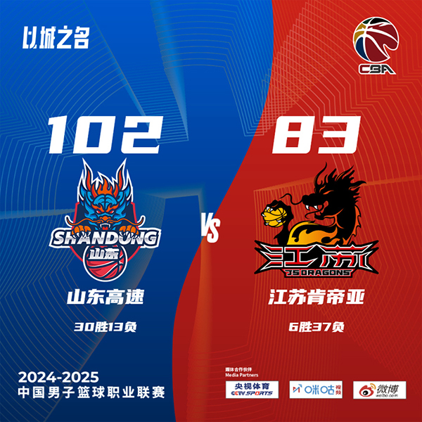 JRS直播网讯北京时间3月21日讯 CBA常规赛,山东今日迎战江苏,前者近来取得三连胜,后者则是遭遇八连败。比赛上来,两队就打得十分胶着,场上比分交替领先,江苏这边古德温状态火热首节就轰下17分5篮板,次节前半段双方继续保持拉锯,但本节两队多次发生冲突,江苏似乎受到影响在后半节几乎没有再得分,山东在半场结束时已经领先到19分;下半场回来,山东的进攻表现下滑明显,但江苏这边也没有把握住机会,分差一直在十分以上,末节山东先拿六分将分差重新扩大到二十分以上,比赛就此失去悬念,最终山东轻取江苏,迎来四连胜的同时也送给后者九连败。
