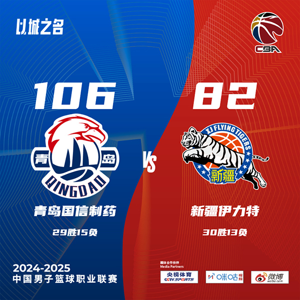 JRS直播网讯北京时间3月24日讯 CBA常规赛,青岛主场迎战新疆,青岛3连胜后28胜15负排在第8位,新疆则是30胜12负排在第6位。本场比赛,赵睿缺阵。比赛开始,新疆反客为主打出8-1开局,但青岛迅速调整,韦瑟斯庞里突外投连续取分,新疆外援联手也能回应,双方对攻,首节青岛领先3分,次节新疆进攻受阻,杨瀚森内线接连打成拉开双位数领先,随后新疆全民皆兵追分,半场新疆还落后6分。下半场,双方展开拉锯战,齐麟外线手感不错,但韦瑟斯庞继续神准,段昂君和杨瀚森也有得分贡献,青岛重新拉开双位数领先,末节新疆进攻端再次断电半节仅得4分,青岛13-4攻击波拉开近20分领先,双方连续打铁时间越来越少,最终青岛106-82力克新疆,拿到4连胜。