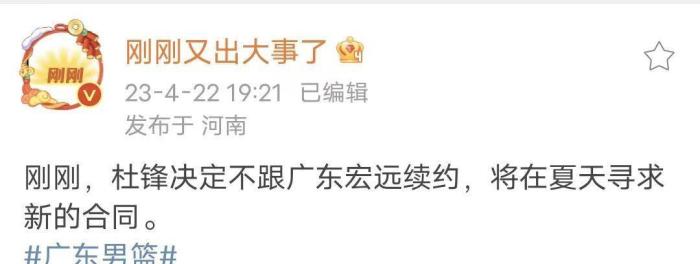 CBA落下帷幕,也意味着休赛期正式开启,球员的交易,教练员的更换也将成为主旋律,此前媒体人“刚刚又出大事了”报道:刚刚,杜锋决定不和广东男篮续约,杜锋指导将在夏天寻求新的合同。被传出不和广东男篮续约,另一边也是传出了杜锋指导的儿子进入了北京首钢的青训,这也让网络上传出了杜锋将离任广东,加盟首钢的传闻,对于自己的卸任传闻,近期,知名媒体人“不是广东博主”也是回应,杜锋指导和广东男篮续约,2年内不夺冠的话将下课,而近期,朱芳雨也是在社交媒体上回应了正在帮助球队寻找训练师和外援,显然作为开药方的人,杜锋也用自己的行动回应,自己并没有卸任,他依旧是广东男篮的一份子。