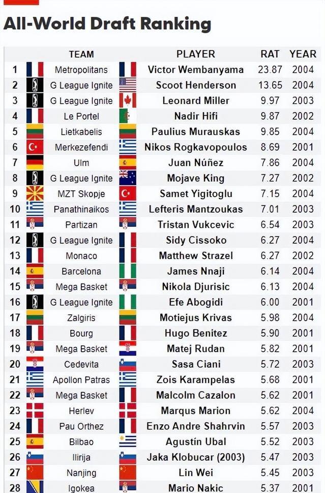 在这份榜单中,林葳的排名出现在第27位的位置,这也是自曾凡博之后,再一次有中国球员的名字出现在NBA选秀榜的榜单中,不过值得一提的是,这个榜单只有国际球员,如果加上美国本土球员,林葳的预计选秀顺位应该在第二轮的末端,这个选秀顺位,或许林葳不会去尝试选秀,但是我们还是希望年轻球员有机会还是可以去尝试,万一成功了呢?如果中国男篮能够拥有一个像当年阿罗约一样的后卫,拿回亚洲霸主地位还是指日可待的。