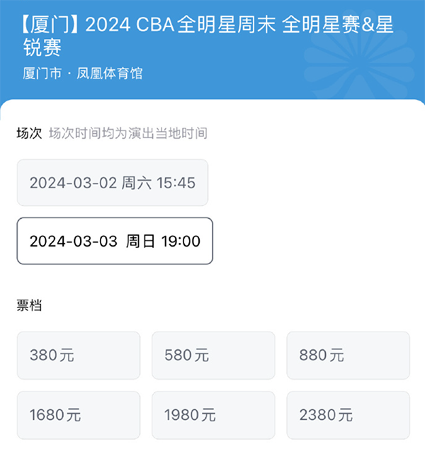 如今CBA全明星在即,球票的销售却遇冷,根据平台显示,3月3日全明星正赛阶段,所有的档位均有余票,最低的是380元一张,最高的是2380元一张。一般情况下,最便宜的球票很快售罄,但很显然,本届CBA全明星并不太受外界追捧。