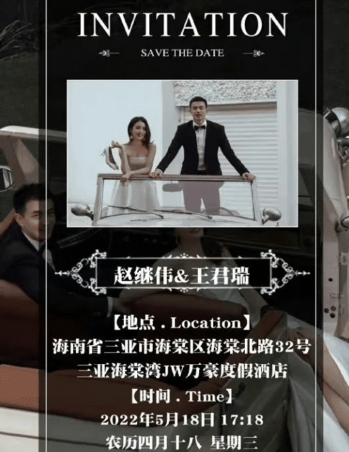 与赵继伟一样都在今年结婚的还有广东男篮的王薪凯、江苏男篮的吴冠希,吴冠希的爱人比他的名气还大,是中国女排主力主攻手张常宁。也祝福这次CBA球员们,新婚快乐。