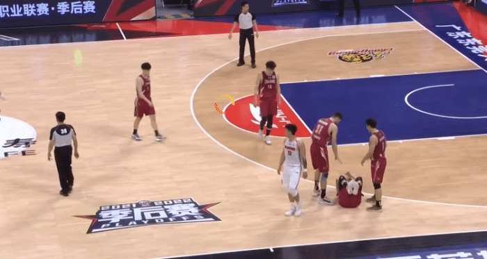 比赛进行到第二节,双方的身体对抗很激烈,在短短41秒的时间裁判就吹了1个违体和1个技术犯规。先是第二节还剩下9分16秒的时候,赵睿后场接球推进,王奕博就地逼抢贴防,两人有身体接触,赵睿摔倒,裁判示意犯规,王奕博着急了,抱怨一下被吹了技术犯规。
