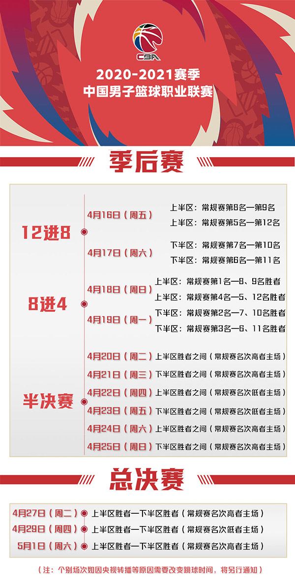 JRS直播网讯 2021-2022赛季CBA季后赛将于4月1日在江西省南昌市正式开打,相信不少球迷都非常期待本赛季的CBA季后赛,那么本赛季CBA季后赛的赛制是如何安排的呢,每一轮要打几场比赛呢,接下来就随小编一起来了解一下吧。