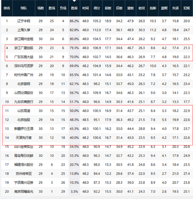 CBA排名新变化,广东爆冷后冲前4难了,山东季后赛资格被3队冲击