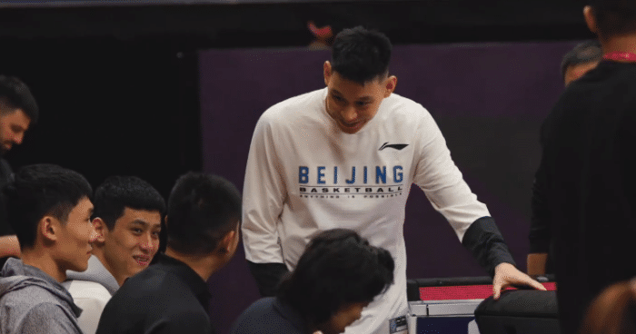 巨星待遇!林书豪现身京沪大战,与秦总热聊,身穿护腰为首钢助威