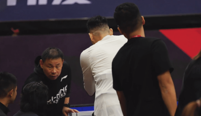 比赛期间,身穿厚护腰,和队友们击掌助阵。值得一提的是如今的林书豪还没有彻底恢复健康,据悉他每天都会花费几个小时来按摩自己的腰部,他的腰部是有明显伤病的,此前也是在上海进行治疗。也正是因为腰伤,所以即便是第一阶段注册成功,林书豪也很有可能无法登场参赛。
