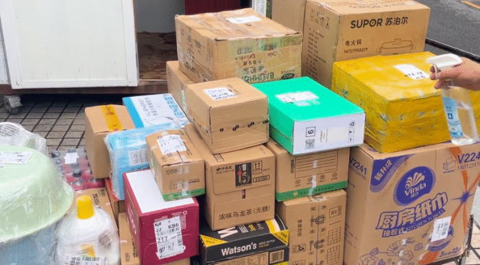 球员们买的东西以快递的方式寄到赛区,需要进行消杀才送进绿区。可以看到,球员们买的东西非常多,有生活必需品的纸巾、洗衣液、脸盆,还有很多是和吃的有关,其中就包括了新买的火锅、饮料,看起来像是运动型饮料,还有茶叶,是无糖的。