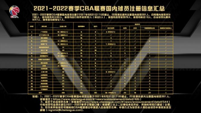 再据统计,CBA20家俱乐部共注册国内球员391人,其中合同期内球员196人,续约球员89人,新签约自行培养球员36人(转出5人),新签约选秀球员29人,新签约转会18人,自由球员认领共计27人,独家签约权受让1人(王哲林从福建加盟上海)。