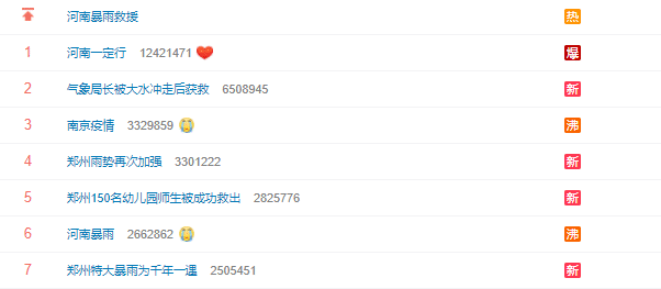 河南遭遇自然灾害,尤其是郑州灾情十分严重,市区汽车被冲走,地铁站被淹没等等,遭此千年一遇的特大暴雨;目前相关部门正在紧急救援以及紧急泄洪,“河南一定行”以及其他多个与郑州有关的话题冲上热搜榜,这是全国人民的心声。