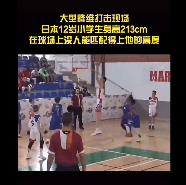 近日,网上一则日本初中生打球的视频热传。这名日本初中生今年只有12岁,但是身高却达到了2米13,臂展则超过2米20。