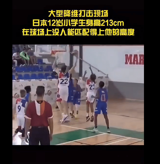 近日,网上一则日本初中生打球的视频热传。这名日本初中生今年只有12岁,但是身高却达到了2米13,臂展则超过2米20。
